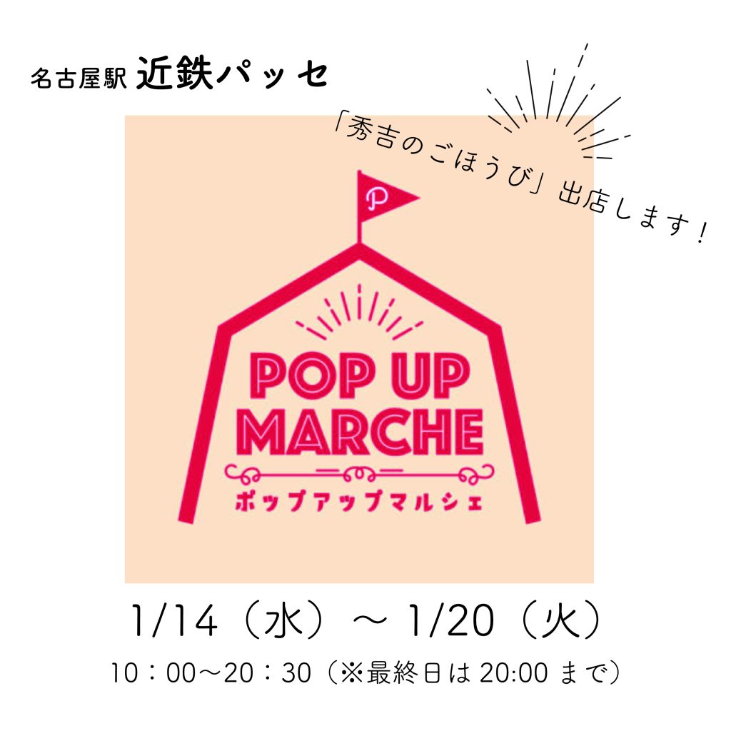 「秀吉のごほうび」が名古屋駅近鉄パッセB1F「ポップアップマルシェ」に期間限定で出店いたします!